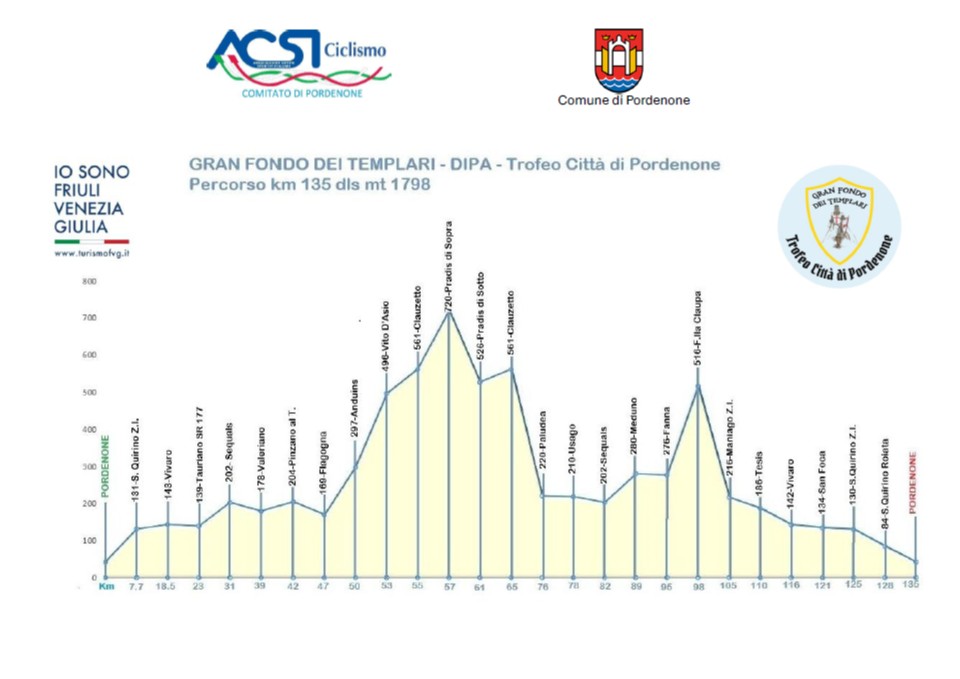 A causa del diniego da parte dell’EDR Pordenone, siamo stati costretti ad apportare delle modifiche al percorso secondo le indicazioni date da EDR stesso. Pertanto, il percorso che prevedeva il via da Pordenone per San Martino di Campagna, Maniago, Meduno con la salita alla Forchia di Meduno, Campone e Clauzetto NON SARA’ PERCORRIBILE e la nuova variante prevede la partenza da Pordenone, quindi per San Quirino Z.I., Vivaro, Tauriano, Sequals, Pinzano al Tagliamento, Anduins e Clauzetto.