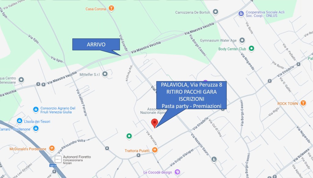 L’arrivo è situato in Via Maestra Vecchia a Pordenone all’intersezione con Vial Grande.
